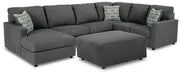 Contemporary fashion, meet superior form. This sectional and ottoman package is strikingly streamlined in design. Cozy cushions invite superior relaxation, while handsome charcoal upholstery speaks to tried-and-true modern color palettes. Simply kick back, relax and settle into the calm of your curated space.
