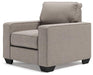 Make your living space that much more livable with this arm chair. Rest assured that its ultra-neutral upholstery with a textural chenille feel goes with anything and everything. Wide track armrests, box cushions and tapered feet lend a clean, contemporary aesthetic. Make it even more enticing by pairing it with the available matching ottoman and reserve yourself the best seat in the house.