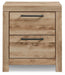 Inspired by natural beauty, refined to perfection. This nightstand brings cozy outdoor vibes to your bedroom with its warm and inviting golden rustic finish. Antiqued gunmetal handles adorn the two drawers on its framed front for an industrial touch, while USB charging adds a high-tech element to the simple, streamlined design.