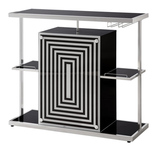 Celebrate art deco-inspired design with the interesting pattern on this modern bar unit. Featuring a geometric rectangular center in glossy black a...