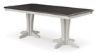 Make a farmhouse-inspired statement with this dining table. Its clean two-tone finish, pedestal base and planked effect bring the charm of the countryside to your dining room. Pair it with other pieces in the collection to complete a casual lifestyle look in your home.