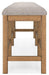 This counter height dining bench is a favorite choice for casual rustic interiors. Offering a great seating alternative, it's your answer for impromptu guests. And the textured upholstered seating? Deliciously versatile and comfortable.