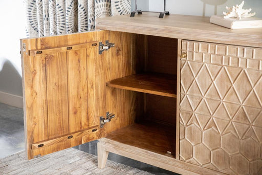 Eberto 2-door Geometric Accent Cabinet White Distressed