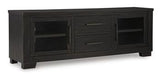 This TV stand brings a rustic vibe to urban contemporary design. It’s a modern approach to natural beauty, with the worn black finish giving your living room a gently aged charm. Console and media storage is made easy with cabinets and drawers. And the stunning simplicity of its color palette allows you to seamlessly coordinate this TV stand with your existing decor.