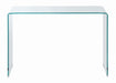 This impressive sofa table comes in a contemporary, understated style that's perfect for the home. The table features a clear, single-piece design with a rectangular table top. Customize the look with a decorative vase or a photo and a small collection of books. Instead of a base, there's an open space design made for a large potted plant or small lamp directly on the floor for a touch of intimacy. With this table, a living room or den are transformed with a modern appeal that's sure to please. Includes: One (1) sofa table