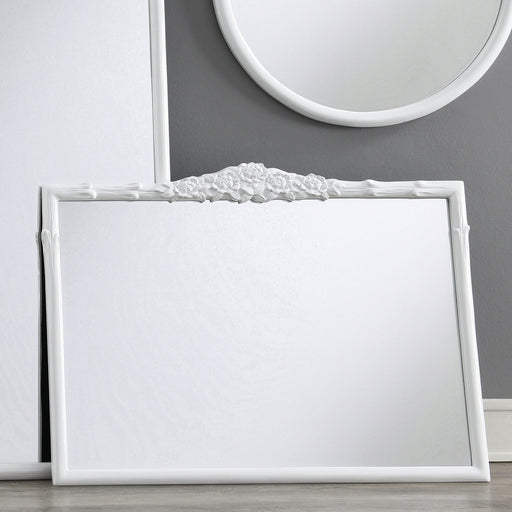 Wall mirrors offer a sparkling finishing touch in your welcoming home, and this rectangular decorative mirror is a lovely choice for your entry or living room. Its horizontal orientation provides a wide view and looks great over an accent or console table. Its carved frame resembles natural tree branches while decorative florals sit atop and add traditional farmhouse character. Reflective glass is flat, offer simplicity and casual elegance that brightens surrounding decor. Place a vase of flowers nearby to add freshness and color to its earthy ambiance. Includes: One (1) wall mirror