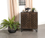 Decorative cutout designs on front doors embellish the artisan motif of this transitional accent cabinet. Versatile style and a spacious interior sets up a perfect well-rounded venue for your space, making a de-clutter effort easy. Brown finish mango wood and MDF construction starts out right to add romantic rustic vibes. Open side-by-side front doors to reveal a single shelf ready to hide whatever you need. Black finished metal doorknobs add a charming look to this delightful cabinet. Includes: One (1) cabinet